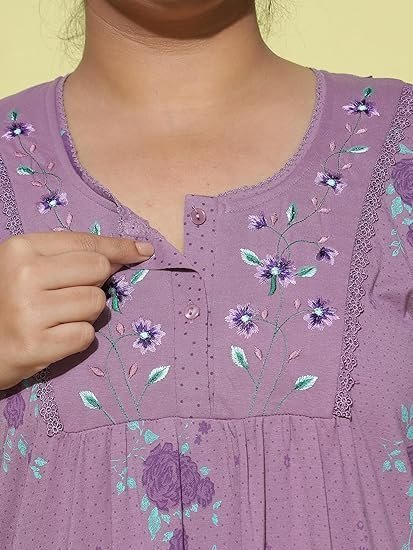 9shines Label Stylish Cotton Blend Nighty Maxi for Women | Full Length Trendy Nightgown | Premium Nightdress | Nightwear | Embroidery Nighty with Pocket (5256)