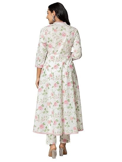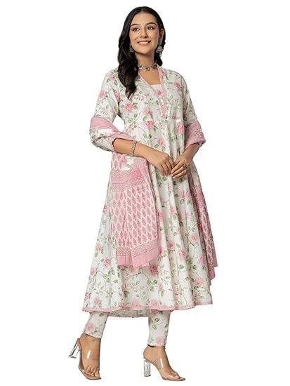 WomenAmayra Women’s Cotton Printed Anarkali Kurta with Palazzo Pants and Dupatta