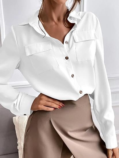 👚 Classic & Timeless: This elegant button-down shirt for women features a turn-down collar, clean stitching, and a minimalistic pocket design that never goes out of style.
