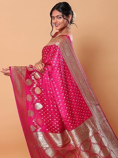 HerClozet Women’s Banarasi Katan Silk Gold Zari Saree-6.3 Mtr(Dark Pink;Golden)
