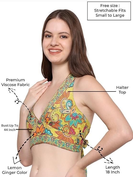 - Free size, stretchable fits small to large. (Bust : up to 44 Inch , Length: up to 18 Inch )