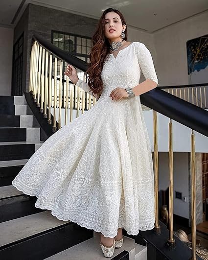 - Generic Name : LookMark Women’s & Girl’s White Color Chiken Kari Long Kurti Gown(K1113-L)