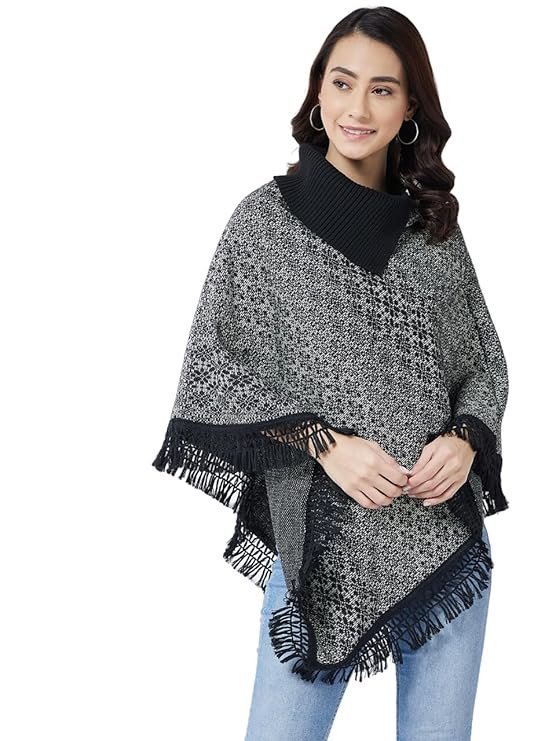 Pivl Wool Blend Striped Poncho for Women for Winter