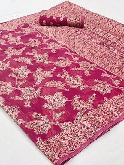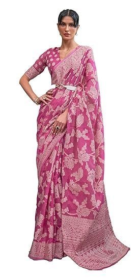 SWORNOF Women’s Lucknowi Chikankari Linen cotton Woven Sarees For Women with Blouse sarees for Women