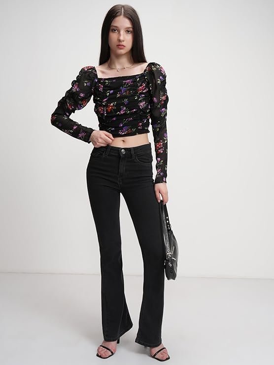 - πποΈ Product Description: A chic black crop top with a vibrant pink floral print, featuring delicate ruched detailing at the front for a flattering silhouette. The fitted design enhances the shape, while the cropped length adds a trendy touch.