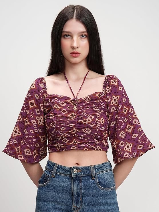 Be the first to review “Women’s Floral Printfitted Crop Top | Short Puff Sleeves | Chic & Feminine & Square Neck | Tops for Woman | Women Tops | Women Crop Top”