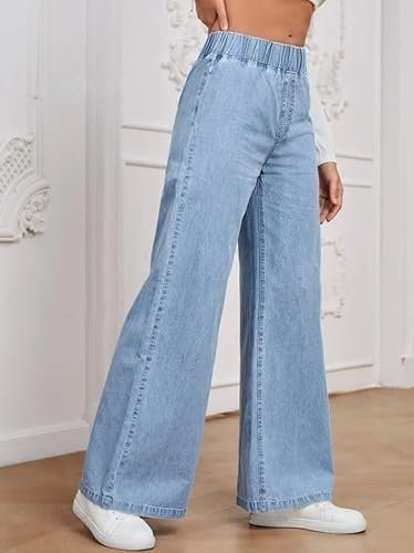 Elevate your casual wardrobe with these sophisticated high-waisted wide-leg jeans. These black denim trousers feature a comfortable elastic waistband that offers a perfect fit without the hassle of buttons or zips. The relaxed boyfriend cut flows gracefully from hip to hem, creating an effortlessly chic silhouette that suits various body types. The loose-fitting design ensures unrestricted movement while maintaining a stylish appearance. These versatile pants pair beautifully with everything from fitted tops to casual tees, making them perfect for both everyday wear and smart-casual occasions. The high-rise waist flatters your natural curves and provides excellent coverage when sitting or bending. The classic black colour offers endless styling possibilities, while the premium denim material promises lasting wear. These trousers combine contemporary fashion with practical comfort, making them an essential addition to any modern wardrobe.