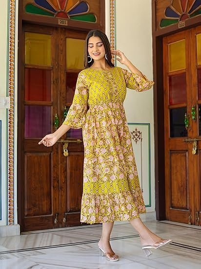 Yash Gallery Women’s Cotton Floral Printed Anarkali Maxi Dress